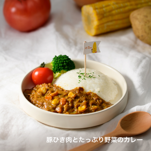 国産豚と国産野菜をたっぷり使用した、具沢山カレーです。辛みを抑えた、開発シェフのオリジナルスパイス使用で、お子さまに優しい味わいです。